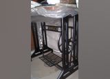 pe de maquina de costura decapado e pintado em cor preta e dourado singer